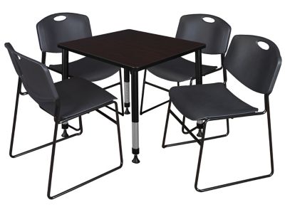 Regency Kee Square Adjustable Classroom Table with 4 Zeng Stack Chairs, 30 in., Black