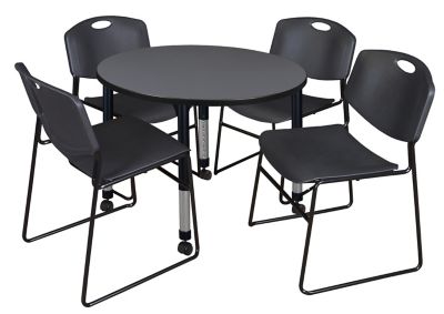 Regency Kee Round Adjustable Classroom Table with 4 Zeng Stack Chairs, 42 in., Black