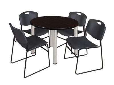 Regency Kee Round Breakroom Table with 4 Zeng Stack Chairs, 42 in., Black