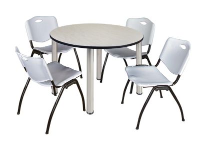 Regency Kee Round Breakroom Table with 4 M Stack Chairs, 48 in., Gray