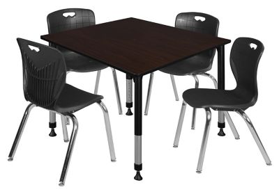 Regency Kee Square Adjustable Classroom Table with 4 Andy 18 in. Chairs, 48 in., Black