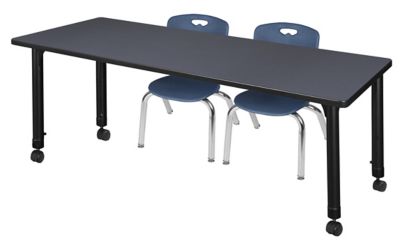 Regency Kee Mobile Adjustable Classroom Table with 2 Andy 12 in. Chairs, 66 in. x 24 in., Blue