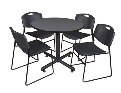 Regency Kobe Round X-Base Breakroom Table with 4 Zeng Stack Chairs, 36 in., Black