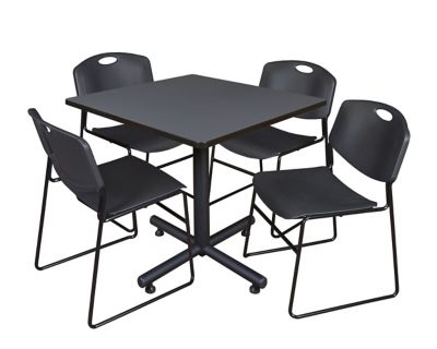 Regency Kobe Square X-Base Breakroom Table with 4 Zeng Stack Chairs, 42 in., Black