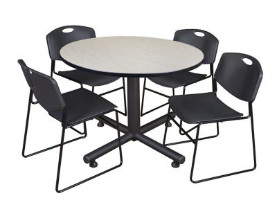Regency Kobe 48 in. Round Breakroom Table, X-Base & 4 Black Zeng Stack Chairs