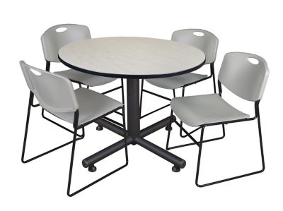 Regency Kobe 48 in. Round Breakroom Table, X-Base & 4 Grey Zeng Stack Chairs