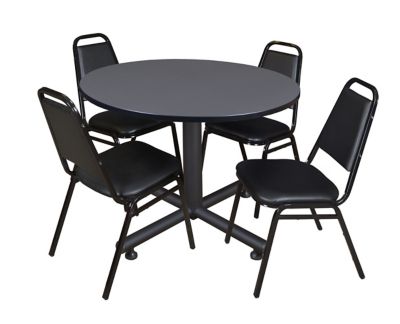 Regency Kobe 48 in. Round Breakroom Table, X-Base & 4 Restaurant Stack Chairs
