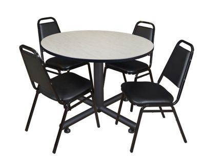 Regency Kobe 48 in. Round Breakroom Table, X-Base & 4 Restaurant Stack Chairs
