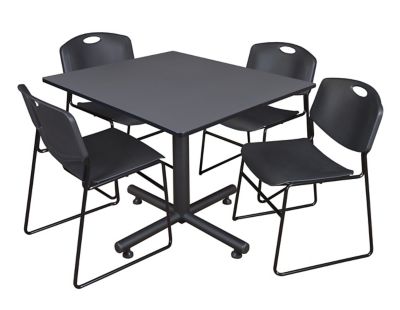 Regency Kobe 48 in. Square Breakroom Table, X-Base & 4 Black Zeng Stack Chairs