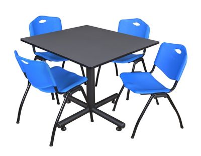 Regency Kobe 48 in. Square Breakroom Table, X-Base & 4 Blue M Stack Chairs
