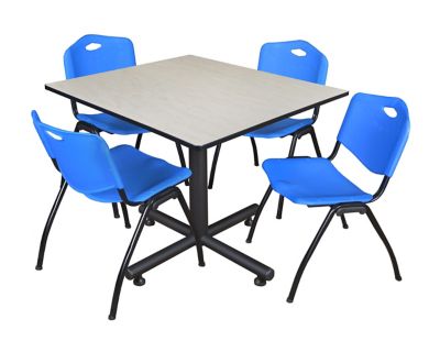 Regency Kobe 48 in. Square Breakroom Table, X-Base & 4 Blue M Stack Chairs