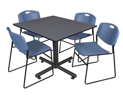 Regency Kobe 48 in. Square Breakroom Table, X-Base & 4 Blue Zeng Stack Chairs