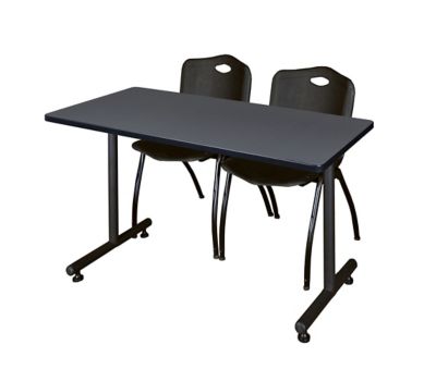 Regency Kobe 48 x 24 in. T-Base Training Seminar Table & 2 Black M Stack Chairs