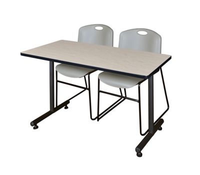 Regency Kobe 48 x 24 in. T-Base Training Seminar Table & 2 Grey Zeng Stack Chairs