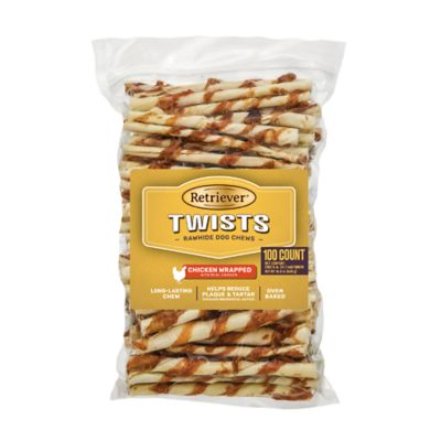 Retriever Chicken-Wrapped Rawhide Twists Dog Chew Treats, 100 ct.