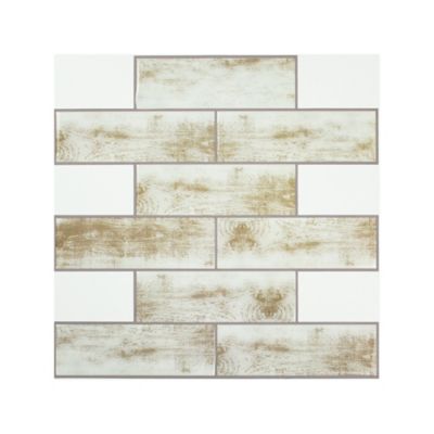 RoomMates Brown Distressed Wood Subway Tiles