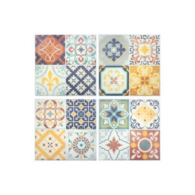 RoomMates Orange/Blue/Yellow Spanish Terracotta Tile Peel and Stick Backsplash