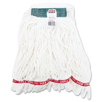 Rubbermaid Web Foot Shrink-Less Looped-End Wet Mop Head, Cotton/Synthetic, Medium, White, 6-Pack