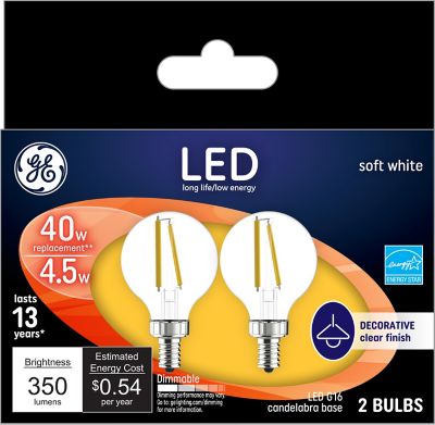 GE 40 Watt Equivalent 350-Lumen G16 Clear Globe LED Decorative Light Bulbs, Soft White, 2,700K, 2-Pack