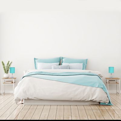 Simple Designs 11 in. H Mini Basic Table Lamps with Fabric Shade, 2-Pack, Blue