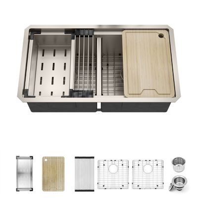 Sinber 33 in. Undermount Double Bowl 16 Gauge 304 Stainless Steel Workstation Kitchen Sink with Accessories, KSS0003D-OLR