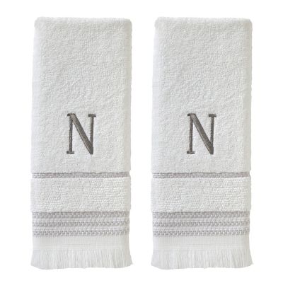 SKL Home Casual Monogram N Hand Towel Set, White, 2 pc.