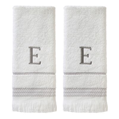 SKL Home Casual Monogram E Hand Towel Set, White, 2 pc.