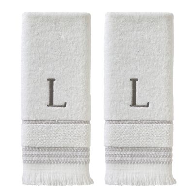 SKL Home Casual Monogram L Hand Towel Set, White, 2 pc.
