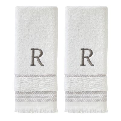 SKL Home Casual Monogram R Hand Towel Set, White, 2 pc.