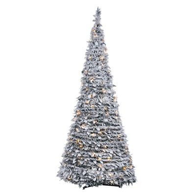 Sterling Tree Company 6 ft. Pop-Up Flocked Holly Leaves Pine Pre-Lit Artificial Christmas Tree with 200 White Lights