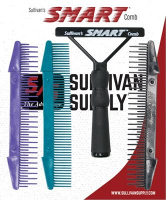 Sullivan Supply The Smart Comb Complete Pack is a multi-tasking, yet the lightest weight comb on the market, with interchangeable blades that securely snap in and out of a plastic handle allowing you to pick the blade of choice. The Smart Comb pack comes as a complete unit with Sullivan's Stimulator and two fluffer blades in one package. Or you can purchase separately as a handle and your choice of a blade. 9 in." comb. Smart, lightweight, and economical. The new comfort handle is perfect for cattle grooming.