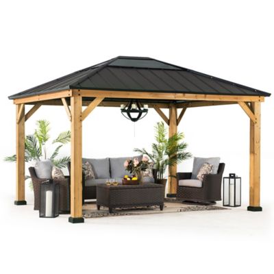 Sunjoy Cedar Framed Gazebo with Steel & Polycarbonate Hip Roof Hardtop, 11 x 13ft.