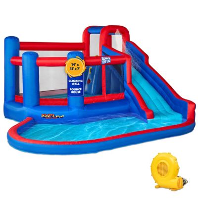 Sunny & Fun Big Time Bounce-A-Round Inflatable Water Slide Park with Bounce House - Blue/Red