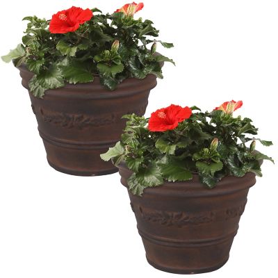 Sunnydaze Decor Weather-Resistant Double-Walled Laurel Outdoor Flower Pot Planter - 13 in. - Rust Finish - 2pk