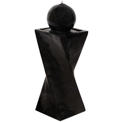 Sunnydaze Decor Outdoor Polyresin Solar Powered Black Ball Water Fountain Feature with LED Light - 30 in. - Black