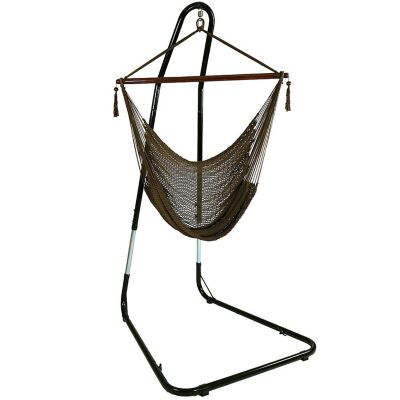 Sunnydaze Decor Caribbean Style Extra Large Hanging Rope Hammock Chair Swing with Stand - 300 lb Weight Capacity - Mocha