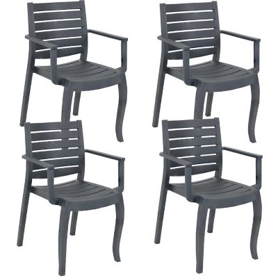 Sunnydaze Decor Polypropylene Stackable Illias Outdoor Patio Arm Chair, Gray, 4pk