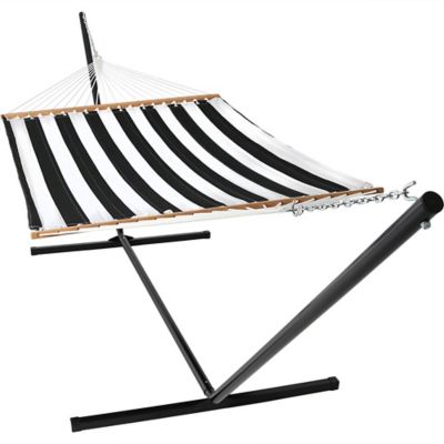 Sunnydaze Decor 2-Person Heavy-Duty Quilted Hammock with Steel Stand - 400 lb Weight Capacity/15 ft. Stand - Black and White