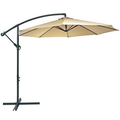 Sunnydaze Decor Steel Outdoor Offset Patio Umbrella with 4-Piece Round Base Set - Beige