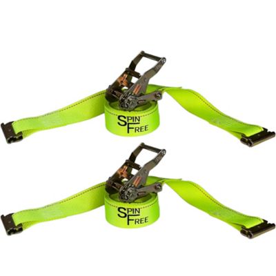 The Ratchet Depot 2 in. x 12 ft. SPIN FREE Interior Ratchet Strap with Spring E-Fittings - Yellow Webbing - 2 Pack