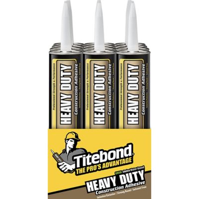 Titebond Contractor Grade Heavy Duty Construction Adhesive is a premium-grade formula designed for more demanding construction and repair projects. It provides strong grab, fills gaps and irregularities and will remain permanently flexible. This professional strength formula will bond to most common building materials. This VOC-compliant, nonflammable formula is environmentally safe - emitting no harmful fumes and promoting healthy living and working environments.