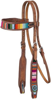 Tough1 Browband Leather Headstall With Woven Serape Inlay