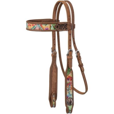 Tough1 Cactus Print Premium Leather Browband Headstall