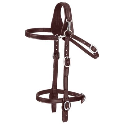 Tough1 Leather Mule Headstall with Snap Crown and Brow