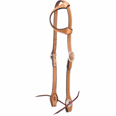 Tough1 Leather Basket Stamped One Ear Headstall with Silver Hardware