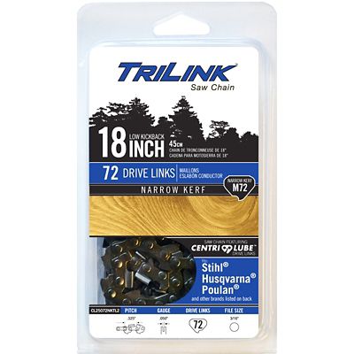 TriLink Saw Chain 18 in. Narrow Kerf Chainsaw Chain, 0.325 in. Pitch, 0.050 in. Gauge, 72 Drive Links