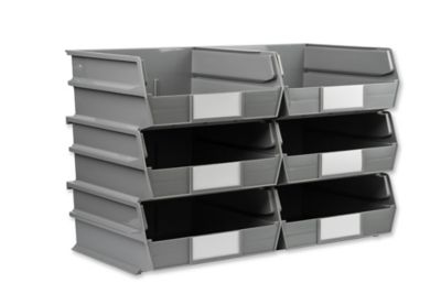 Triton Products 10-7/8 in. L x 11 in. W x 5 in. H Gray Stacking, Hanging, Interlocking Polypropylene Bins, 6 CT
