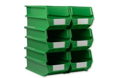 Triton Products 14-3/4 in. L x 8-1/4 in. W x 7 in. H Green Stacking, Hanging, Interlocking Polypropylene Bins, 6 CT