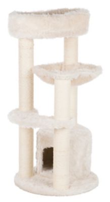 TRIXIE 39 in. Baza Junior Cat Tower, Jute Scratching Posts & Plush Covered Condo, Perch, and Hammock, Cream