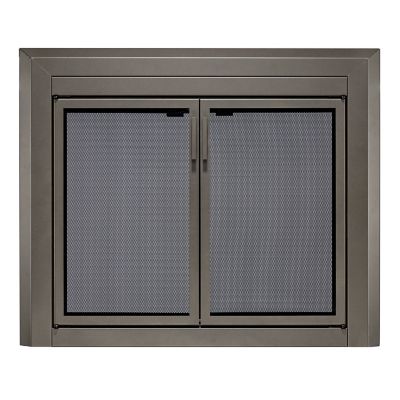 UniFlame Logan Gunmetal Cabinet-style Fireplace Doors with Smoke Tempered Glass, Small